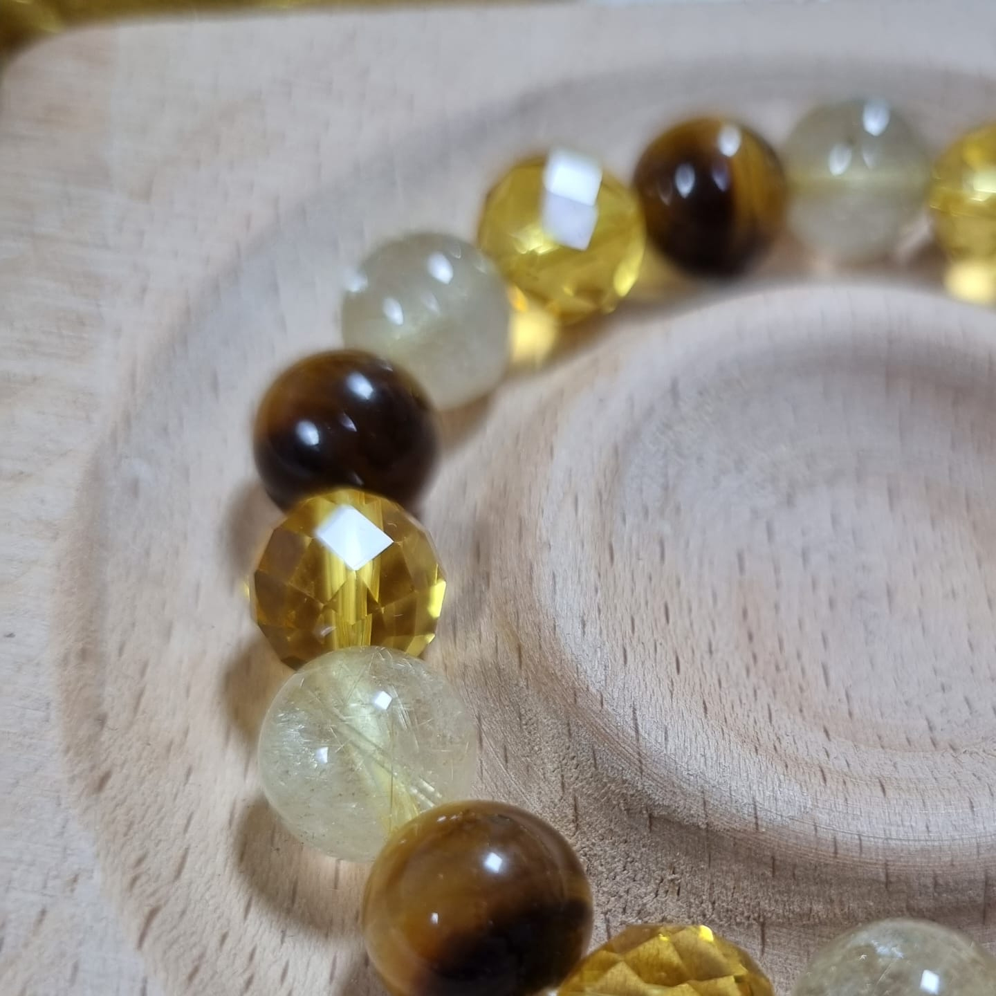 Citrine, Tiger Eye and gold rutilated quartz