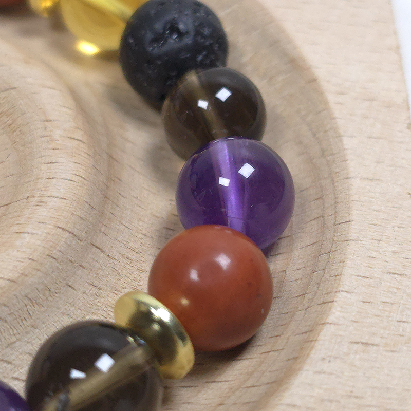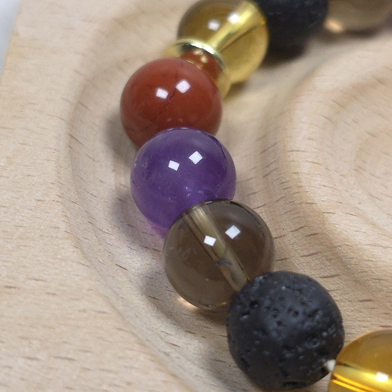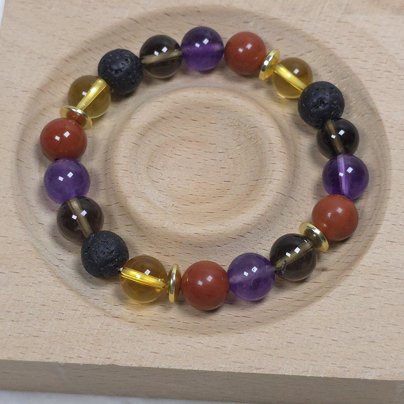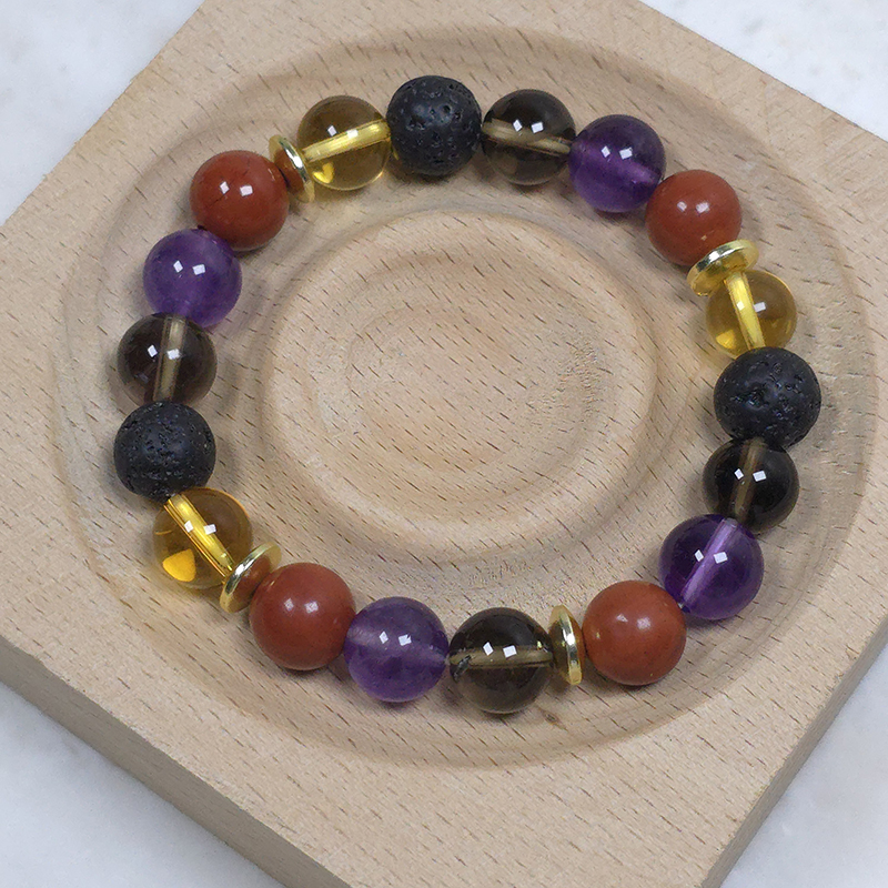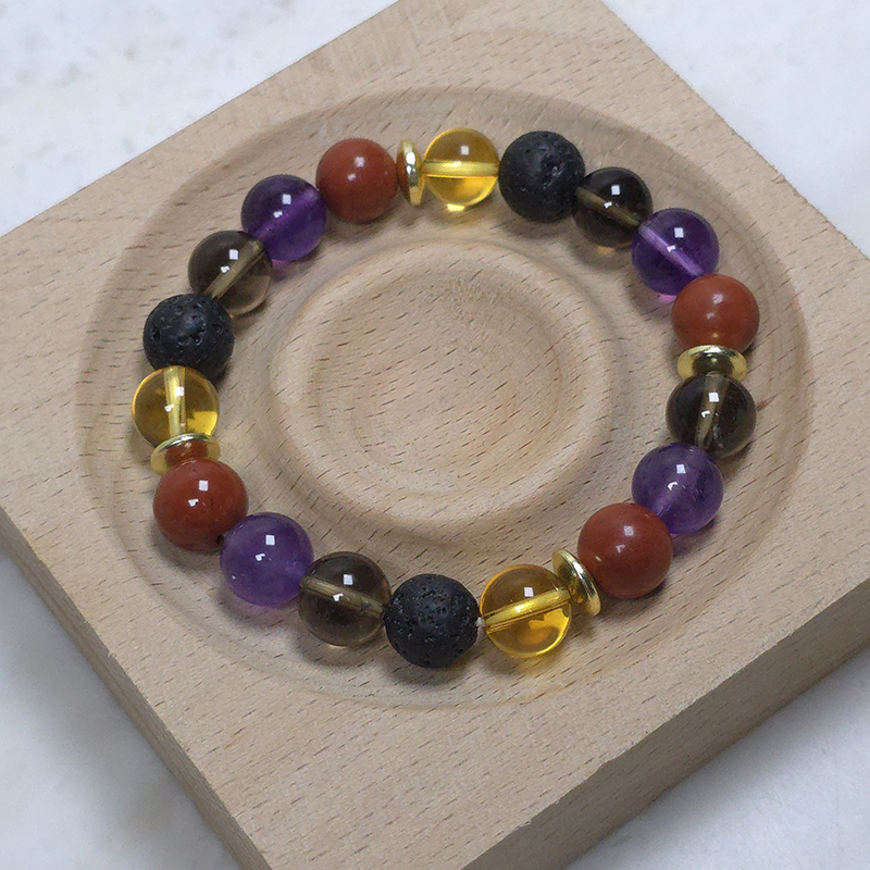 Crystal bracelet includes a lava bead to allow for the