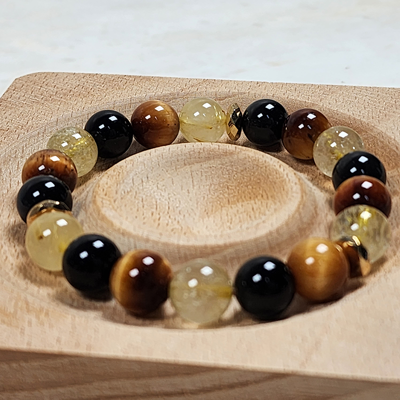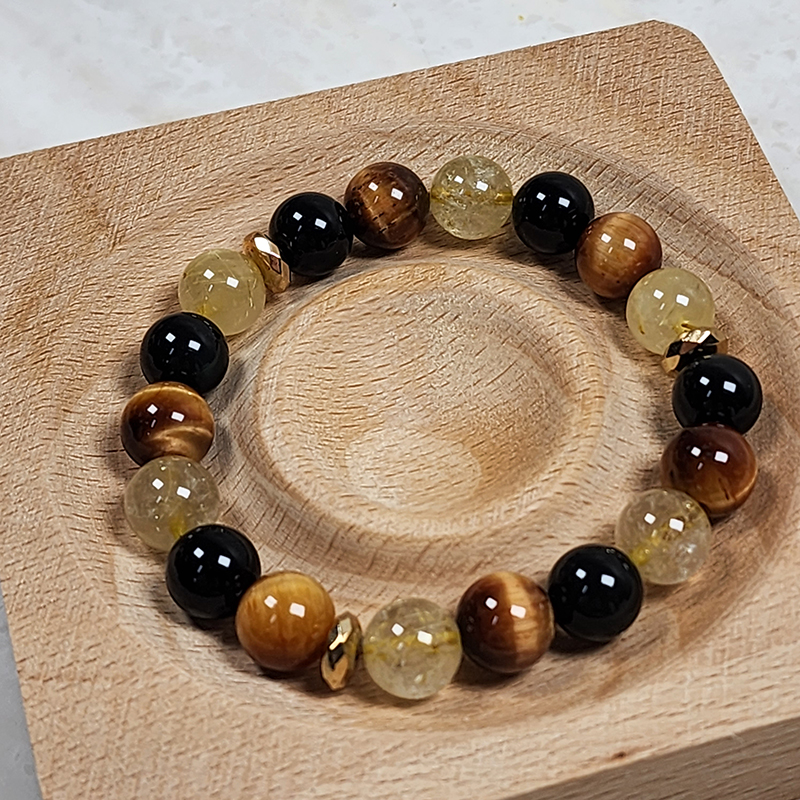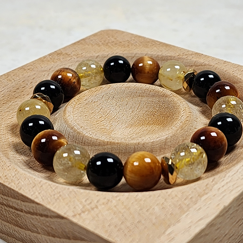 Tiger Eye Citrine Crystal Bracelet with Feng Shui Black Obsidian Wealth for Maximum Wealth Abundance and Money Luck Attraction: Ultimate Wealth Prosperity Bracelet. Charged citrine crystal stone, black obsidian to help attract money, wealth, prosperity, and good luck. Hematite beads for extra boost of energy. This crystal bracelet attracts abundance, mega wealth, and healing energy. Say bye to negative energy and promote healing in your body. It's a good luck and money bracelet.
