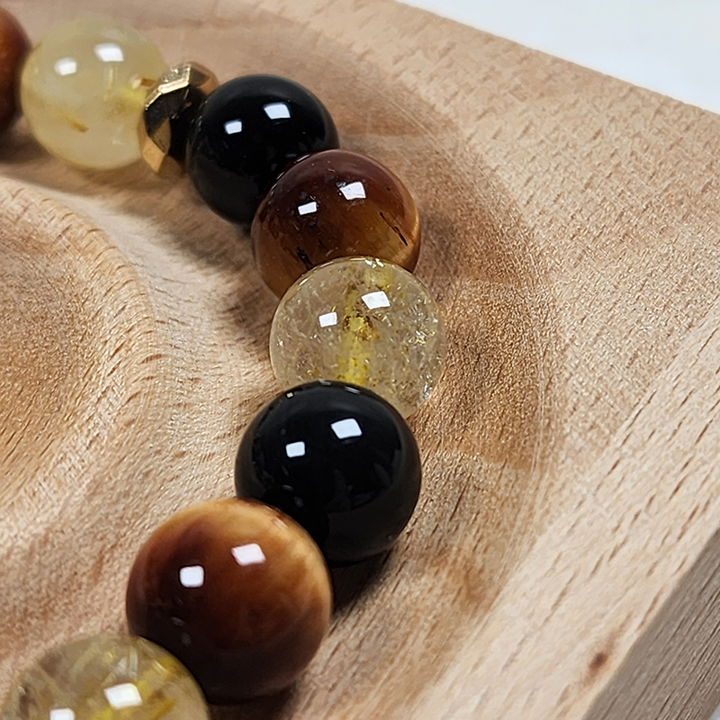 [Healing Trust] Citrine Crystal Bracelet, Tiger Eye, Feng Shui Black Obsidian Wealth Bracelet for Women and Men, Hematite Spacers, Prosperity Money Luck Bracelet, Business Entrepreneur Goals