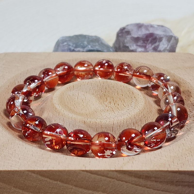 Phoenix Feather crystal has a brilliant orange red inclusion which is called ‘’Ice glitter’’ and it resembles the feathers of a phoenix. The Fengyu crystal is rich in trace elements and is able to accomplish the effect of massaging muscles. When worn on hand, it can press the skin, relax local muscles and soothe body fatigue. Also known as phoenix nirvana, when worn, it inspires one to be positive and relieve negative emotions. It is also able to enhance the temperament as the contents are in several poses and can be worn on the body to enhance it.
